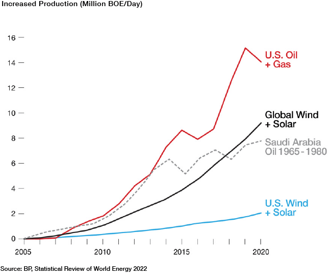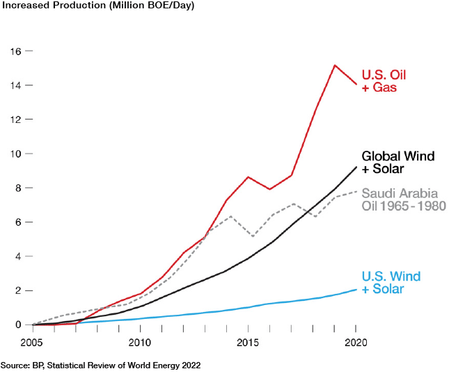 Epitomizing that divide, a tweet from Elon Musk in the immediate weeks following the invasion acknowledged that “we need to increase oil & gas output immediately.”[4] By contrast, the president of the European Commission had announced: “We are doubling down on renewables. This will increase Europe’s strategic independence on energy.”[5] The International Energy Agency (IEA) and the Biden administration are on board with this approach. Indeed, Congress has recently enacted legislation to expand subsidies and spend hundreds of billions of dollars more in that pursuit.