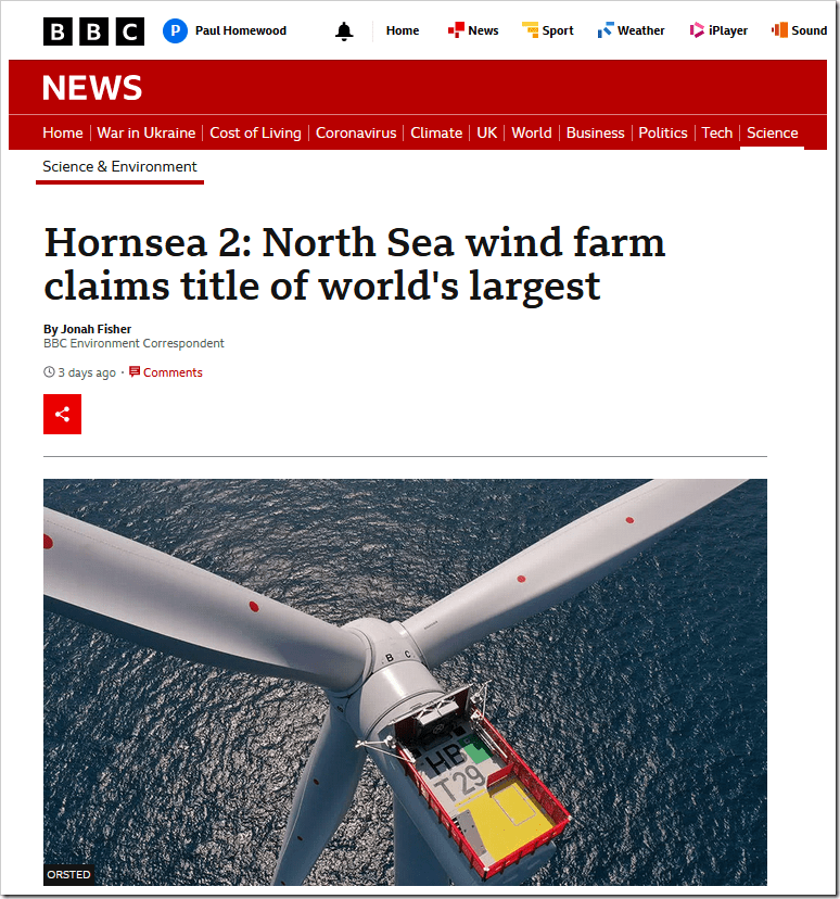 In overall national terms, Hornsea 2 will supply about 1.5% of the UK’s power, still a sizeable amount, so why doesn’t the BBC tell the full story?