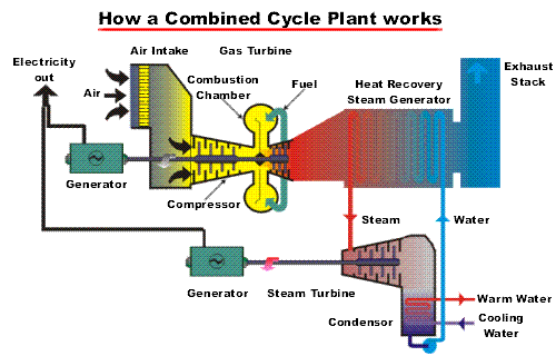 CCGTs, on the other hand, capture the exhaust gas from the first cycle, which is a turbine with a similar configuration to the OCGT, the difference being is that the exhaust gas is used to heat a boiler, which in turn produces steam used to power another turbine and generate electricity in addition to that from the gas burning turbine. Hence the name “combined cycle”. The heat energy is captured, not wasted and, accordingly, gas is used far more efficiently than in the OCGT. CCGTs are not designed as fast start-up units but, rather, are designed to run for longer periods to obtain the benefit of the heat used to keep a boiler up to steam: