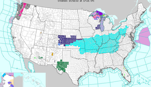 “Much below normal temperatures with morning frost/freeze conditions are expected for much of the eastern U.S. behind a strong cold front for the first half of the week,” the National Weather Service stated in an Oct. 17 update. “The Northwest will remain warmer than normal over the next few days thanks to the continued presence of upper-level high pressure resulting in some record temperatures and areas of wildfire smoke with unhealthy air quality.”