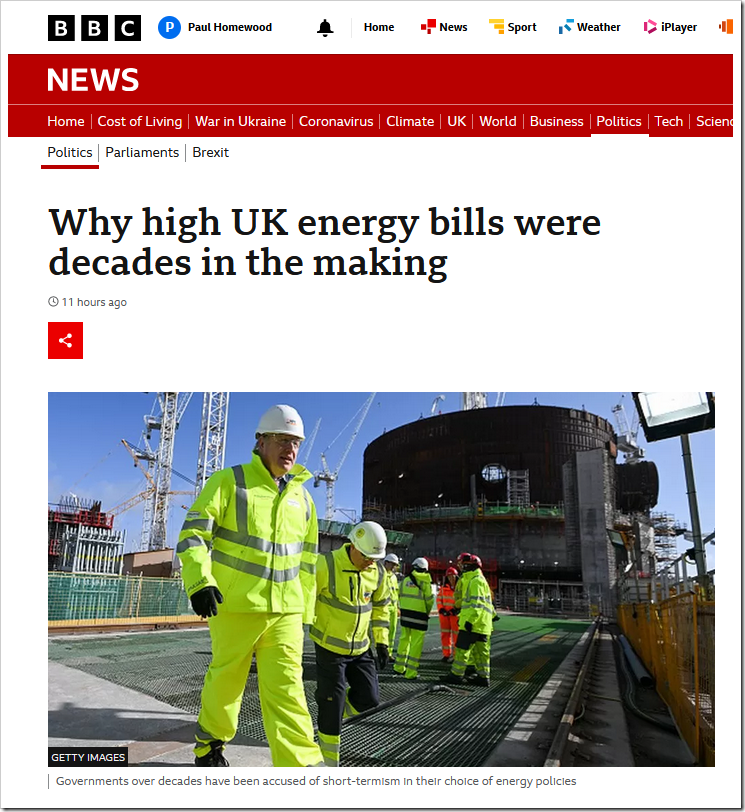 But I want to focus here on the last item on the list. We have seen frequent claims this year that energy bills would not have been so high if we had built more renewable capacity. This is what the BBC say: