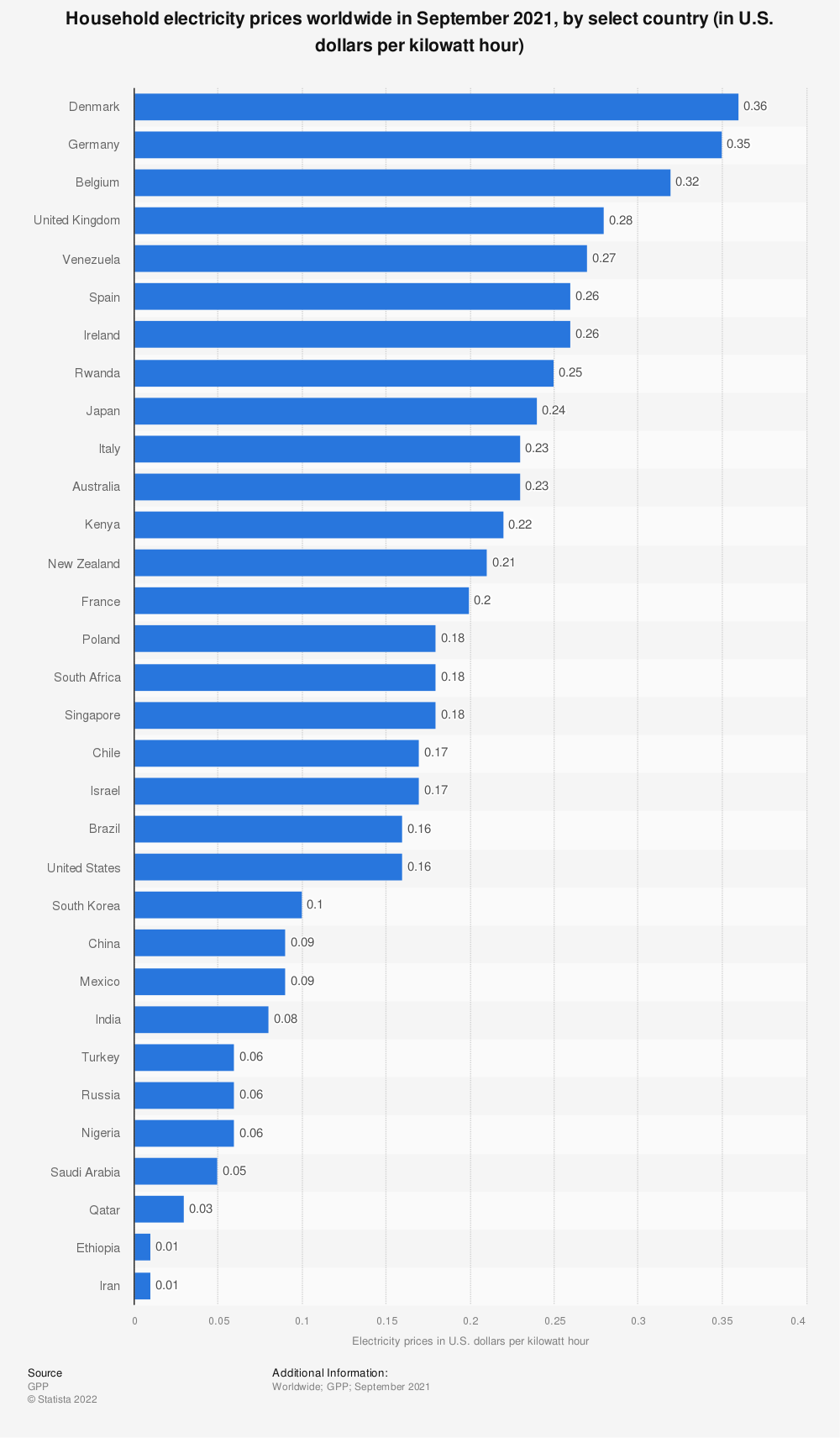 The French put paid to the lie that nuclear power is expensive; the French power consumer pays around half what wind and solar-powered Danes and Germans do (see above). Since Vladimir Putin’s adventure in Ukraine, German power prices have rocketed, further still, recently hitting a record 40 US cents per kWh.