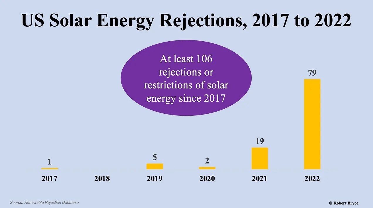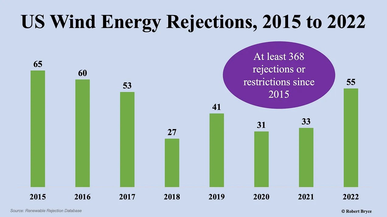 In 2015, after writing a number of articles about the rural backlash against renewables, I began compiling data on the communities that have rejected or restricted wind projects in an Excel spreadsheet. That effort eventually became the Renewable Rejection Database, which is available on my website, and contains details on the rejections, which now total 368 for wind and 106 for solar.