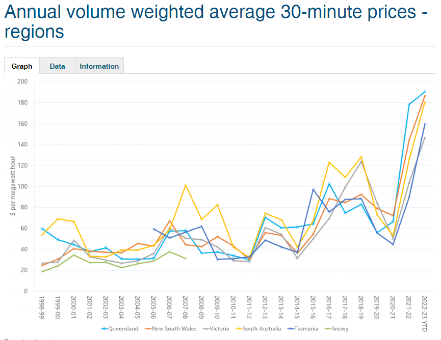 In another, ‘we told you so’ moment, retail power prices in Australia will jump by 20% to 30% in June, following annual, double-digit increases every year, for the best part of a decade (see above).