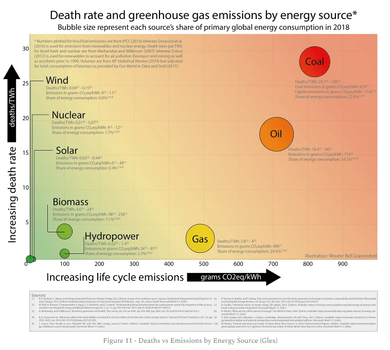 It would be remiss not to look at the human mortality from various energy sources. Thankfully, Glex have looked at this and a summary of their findings is shown in Figure 11.