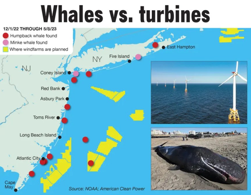 Committee for a Constructive Tomorrow president Craig Rucker said the push to build the wind farms comes “despite growing evidence that whales are being impacted by the preliminary sonar blasting being conducted to site windmills, as well as scores of the marine mammals washing up dead on beaches.”