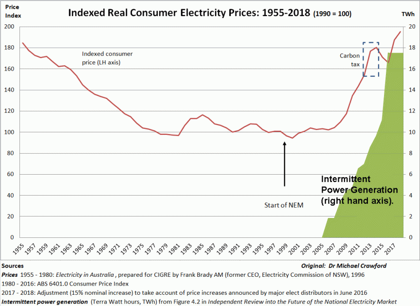 STT has been banging on about this since December 2012. So, don’t say we didn’t warn you. The graphic above from Dr Michael Crawford spells it out: add massively subsidised and chaotically intermittent wind and solar to your power grid and watch power prices spiral out of control.