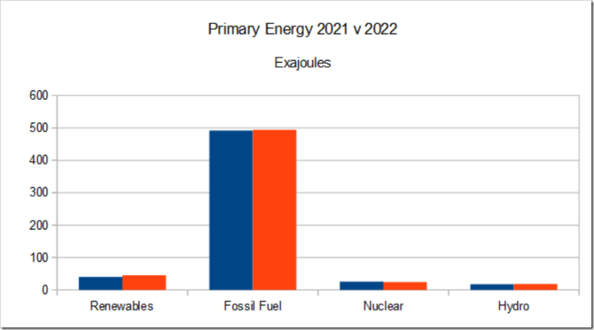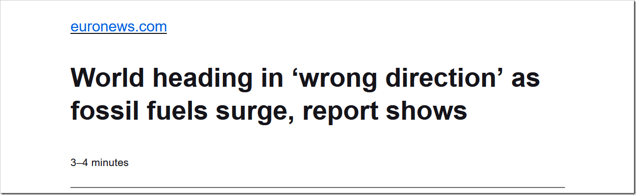 In essence nothing has changed year-on-year. Although renewable energy output has risen by 13%, its share of total energy has only gone from 1.5% to 1.7% (in contrast to EuroNews’ attempts to fool readers with claims of an increase of a whopping 266 gigawatts).
