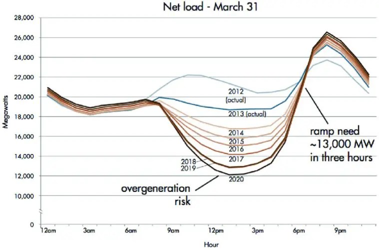 In one of our earlier posts, Donn Dears explained what’s happened since the Californian grid has been overloaded with solar, in these terms:
