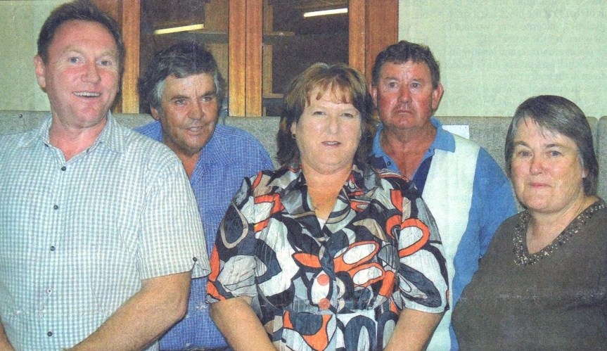 Barrister Peter Quinn with Appellants Bill Quinn, Lyn Kelly, Malcolm Kelly and Dawn Booth at the ‘Save Mt Bryan Fighting Fund’ meeting on 19 February 2010