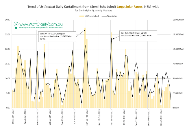 Fig 3 Grid solar daily curtailment Jan to March 2023