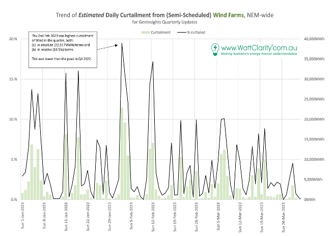 Fig 4 Wind farm daily curtailment Jan to March 2023