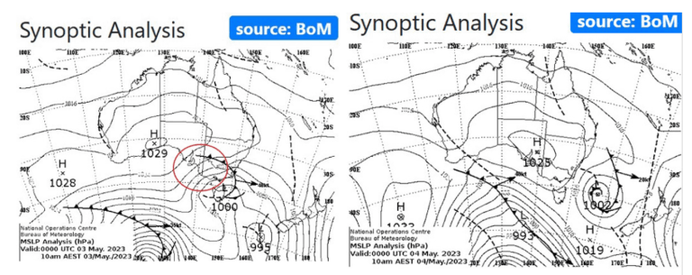 That 6GW loss is a lot of coal and gas fired power stations which need to ramp up to cover the decline. It would be in addition to those which covered the 4pm to 9am solar loss. Declines like this might not happen that often, but they occur. How many days a year would you be prepared to be without power if you were relying on wind? The weather conditions which caused this are shown in Figure 7. Now where would the somewhere be for the wind farms the proponents are hoping to find?