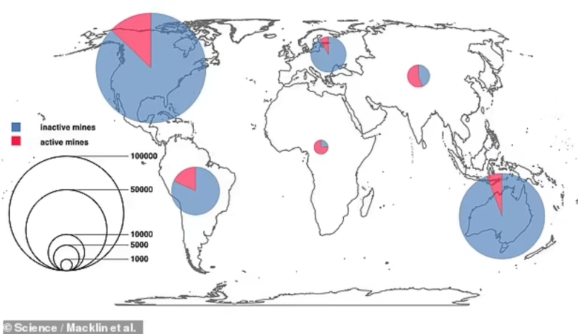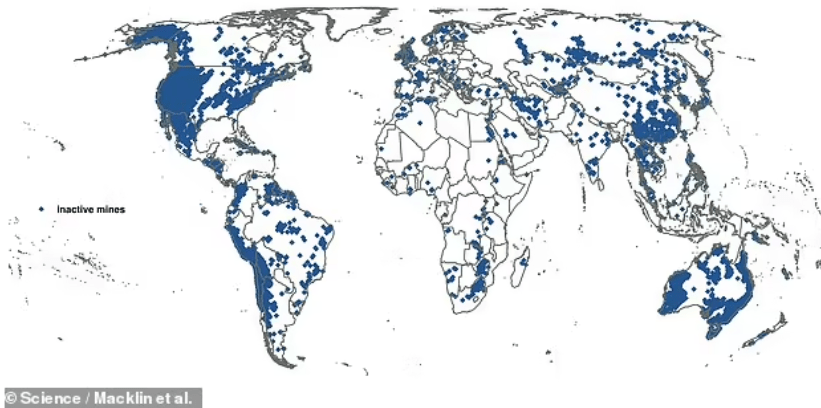 ‘Much of the estimated global contamination we have mapped is a legacy from the industrial era,’ Thomas said in a press statement. ‘Rightly, modern mining is being encouraged to prioritize environmental sustainability.’