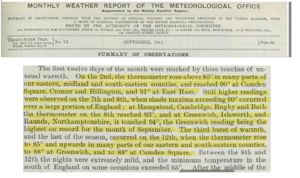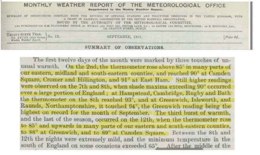 Maybe even more remarkable were the three September heatwaves in 1911, which were the culmination of an exceptionally hot summer.