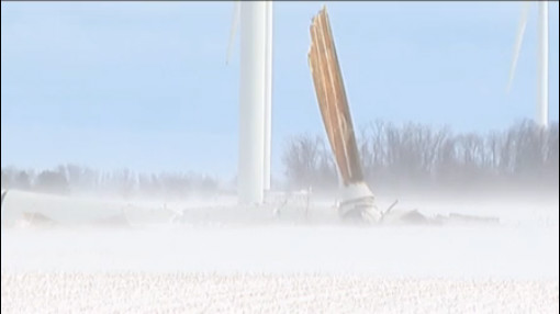 Among the fatalities and injuries caused are those that result from vehicles being impaled by wind turbine blades or people being struck by flying chunks thereof: see our posts here and here and here and here and here.
