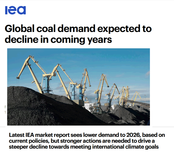 The IEA is the “International Energy Agency” — supposedly, the impartial servant of 31 nations worth of taxpayers. Yet they decided to ignore the world record and instead tell us how coal is set to decline. It’s what they think the taxpayers need to hear.  Their press release: