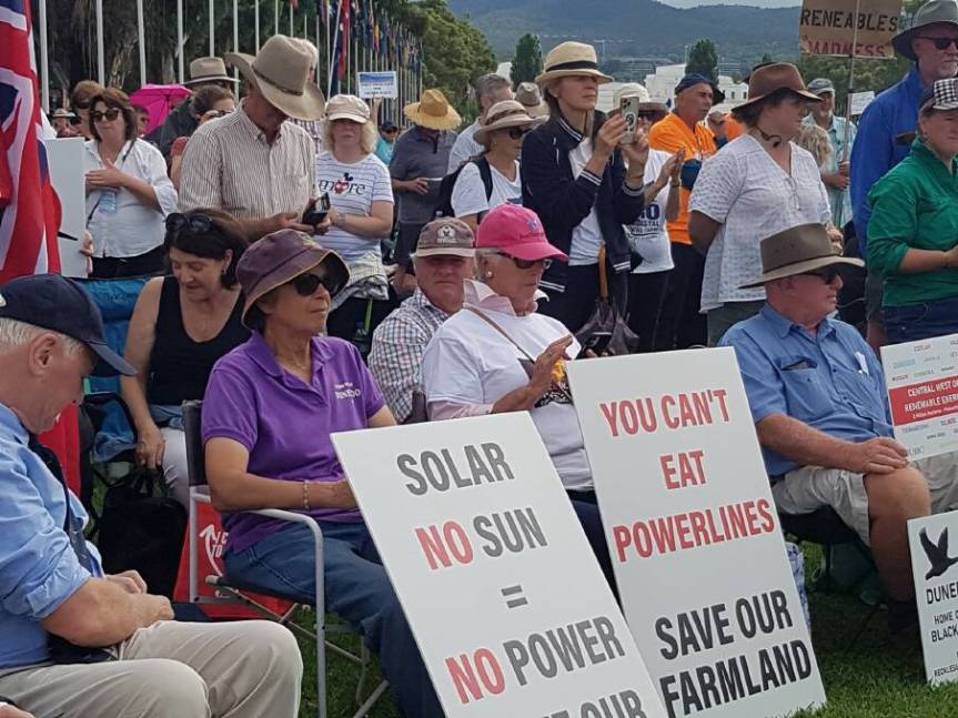 Many people from regional Australia attended a Reckless Renewables rally on Tuesday in Canberra to protest solar and windfarms which have been proposed to be built near their homes.