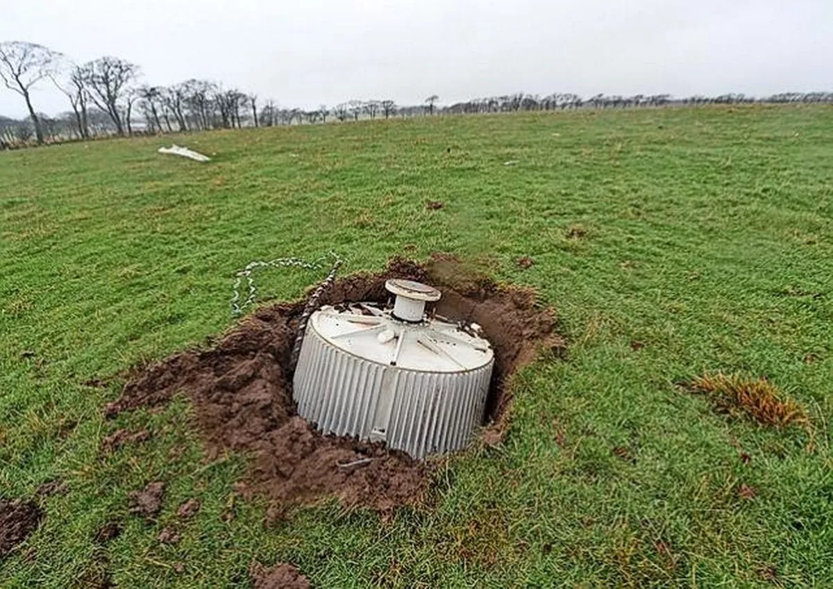 Dramatic footage of the incident also revealed large parts of the fibreglass structure were left embedded in the ground due to the force of winds during Storm Gerrit in Galston, Ayrshire.