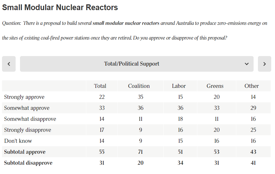 An exclusive Newspoll conducted for The Australian shows 55 per cent of all Australian voters supported the idea of small modular nuclear reactors as a replacement technology for coal-fired power.