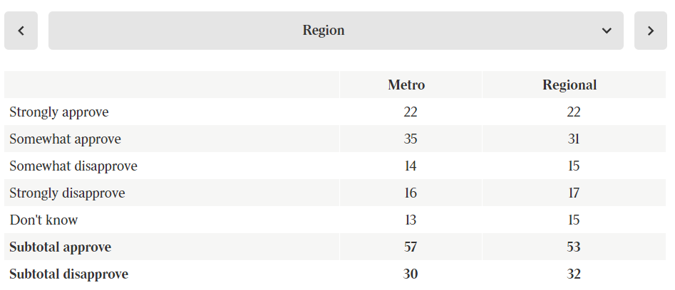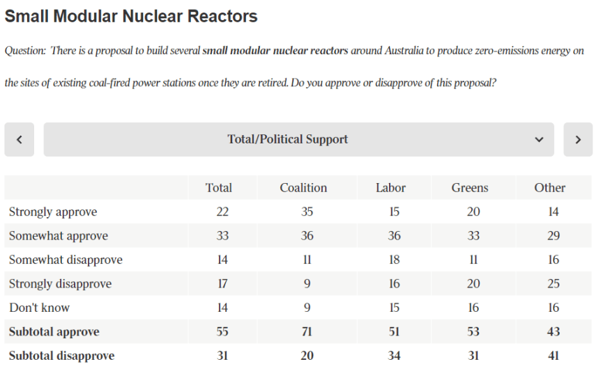 The backing of SMRs was similar across the country, with 57 per cent of metropolitan voters in favour and 53 per cent of regional or rural voters supporting the idea.