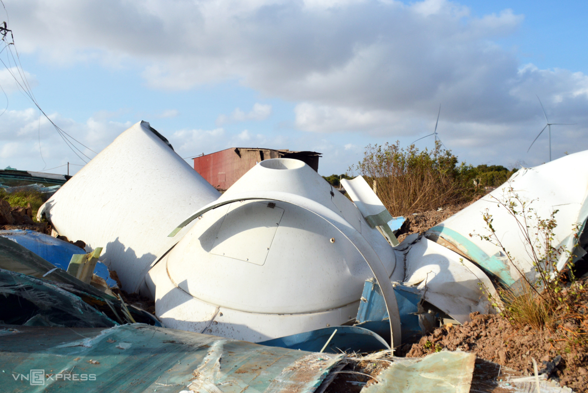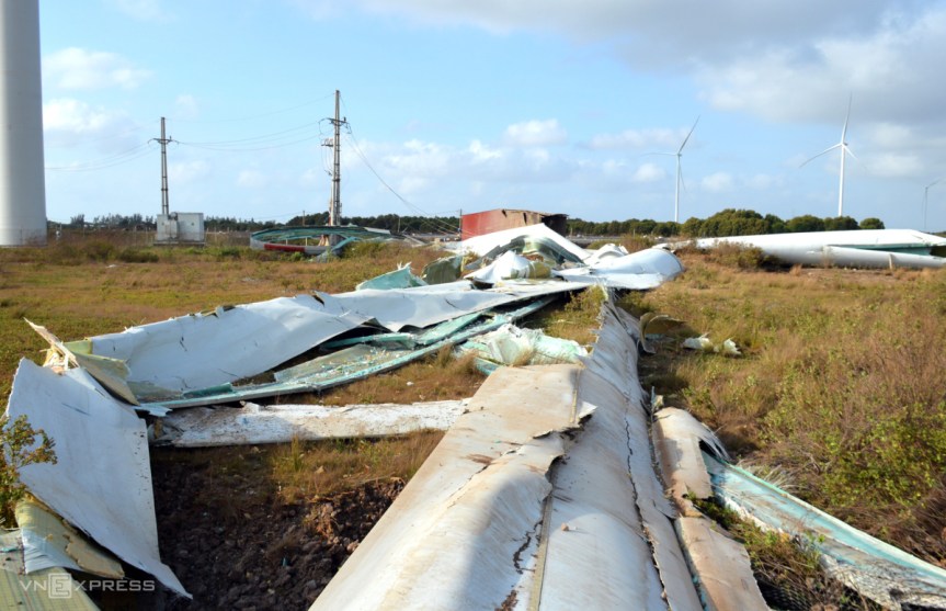 Residents of Hoa Binh District heard a loud noise at around 5 p.m. Friday and saw wing blades at Hoa Binh Wind Power No. 5 fell to the ground. No person was injured.