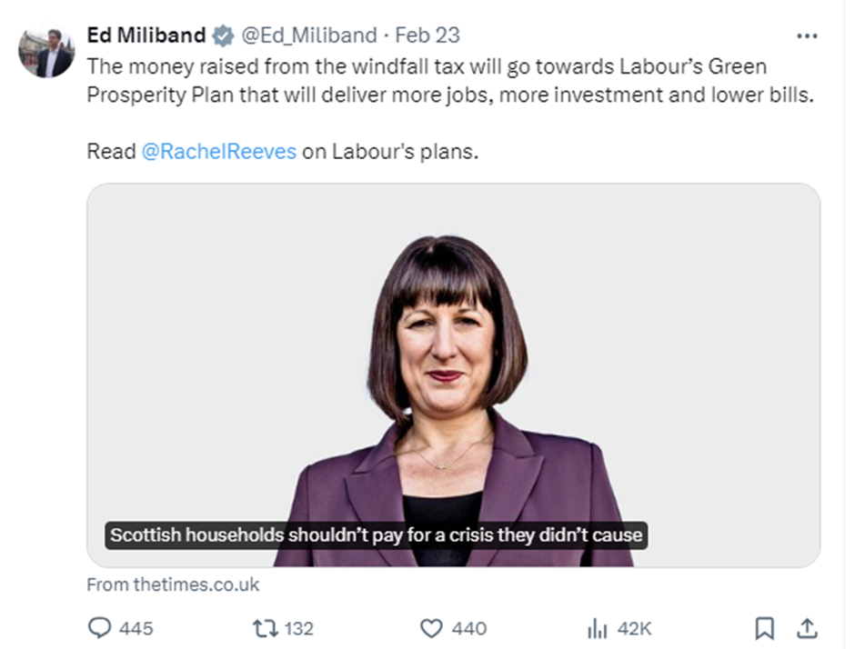 Miliband was ‘ratioed’ on X, meaning he received more replies than likes, so maybe the public is starting to rumble his ruse. Nevertheless, he is likely to be in the Cabinet after the election, so we need to pay attention to what he says. Time to work through the data to find out how much these mythical jobs in the renewable sector cost us.