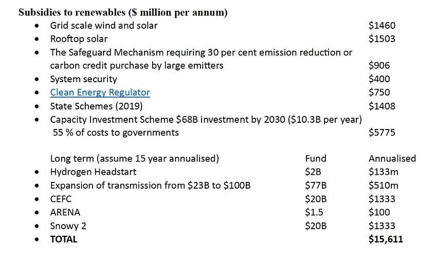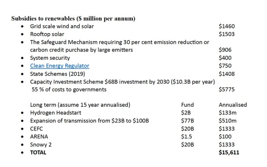 With the Capacity Investment Scheme and other measures, the Albanese Government has turbocharged the renewable energy subsidy programs from an annual cost of $9 billion under Scott Morrison to over $15 billion. The various measures are summarised below.