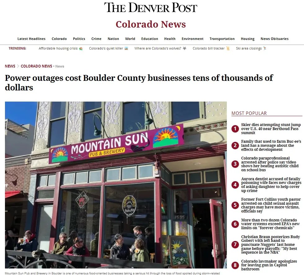 Last weekend, hundreds of thousands of Xcel Energy customers in Colorado lost power as high winds damaged power lines, and Xcel preemptively shut off the power to 55,000 customers to mitigate the risk of wildfires. Among the customers who lost power were homeowners and small businesses who received little to no warning.