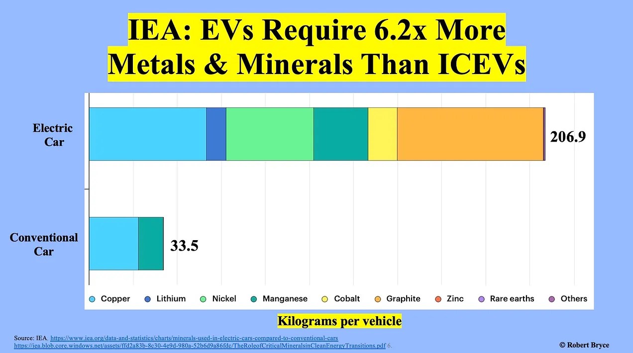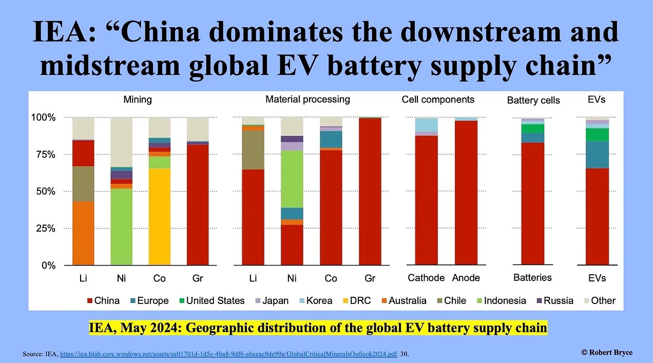 As Robert Bryce explains below, the attempt to challenge China’s dominance of the EV market is positively bonkers and the West’s increasing reliance on China as a supplier of the wind turbines and solar panels needed for the grand ‘transition’, totally insane.