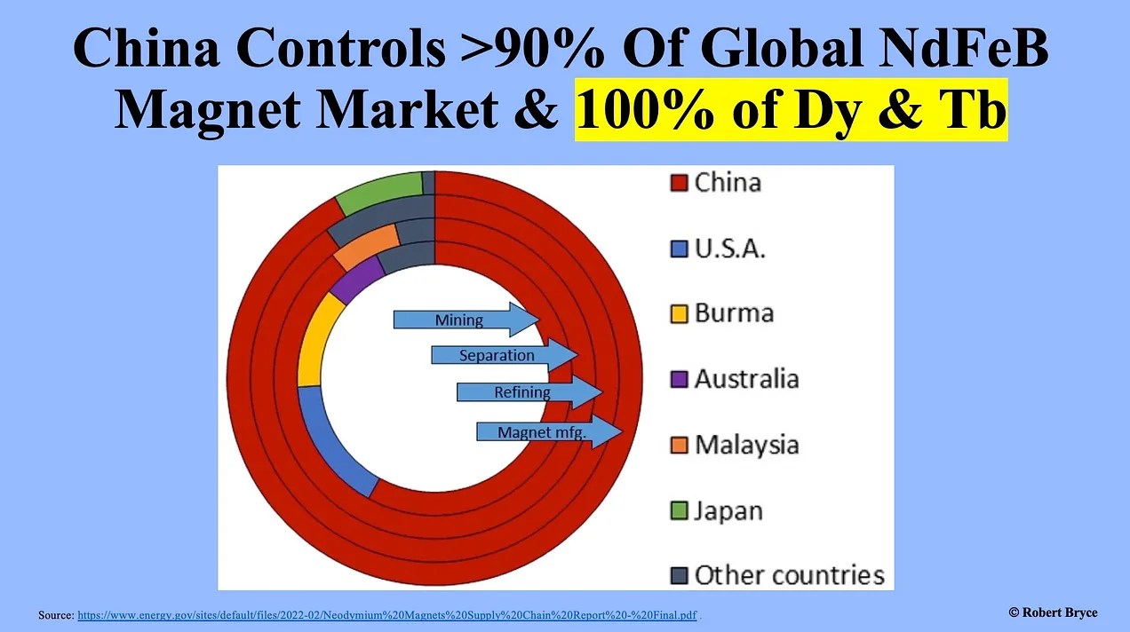 If the chart below looks familiar, you may have seen it in a piece I published last May called “The EPA’s China Syndrome.” The graphic is derived from a 2022 DOE report on NdFeB magnets.