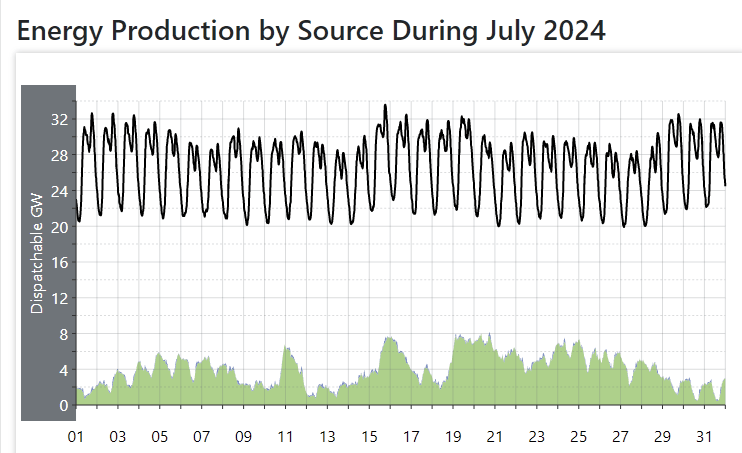 Not so coincidentally, the price spikes on July 31 2024 occurred when wind and solar generators were out: