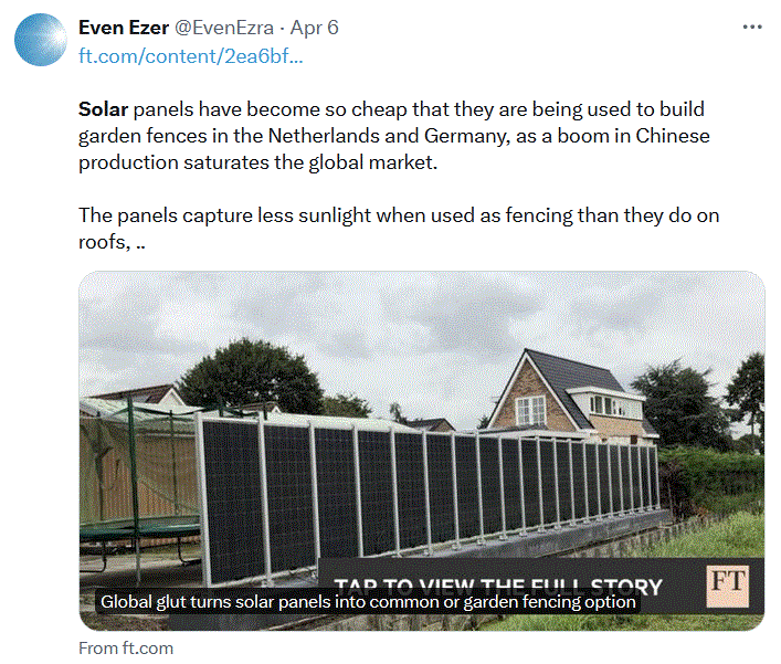For a decade or so, around four fifths of the solar supply has come out of China leading the Financial Times to report: