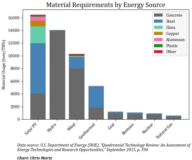 Other studies using US DOE data into the material intensity of wind and solar power have shown a similar result, see Figure 7.