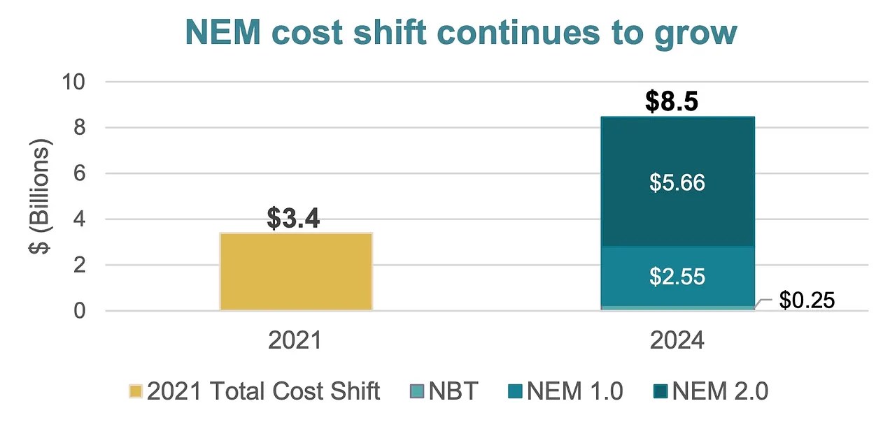 Furthermore, those costs are rising. As seen in the graphic above, pulled from the PAO’s report, the cost shift related to net energy metering, which subsidizes rooftop solar, has more than doubled since 2021. Here’s the key section from the report: