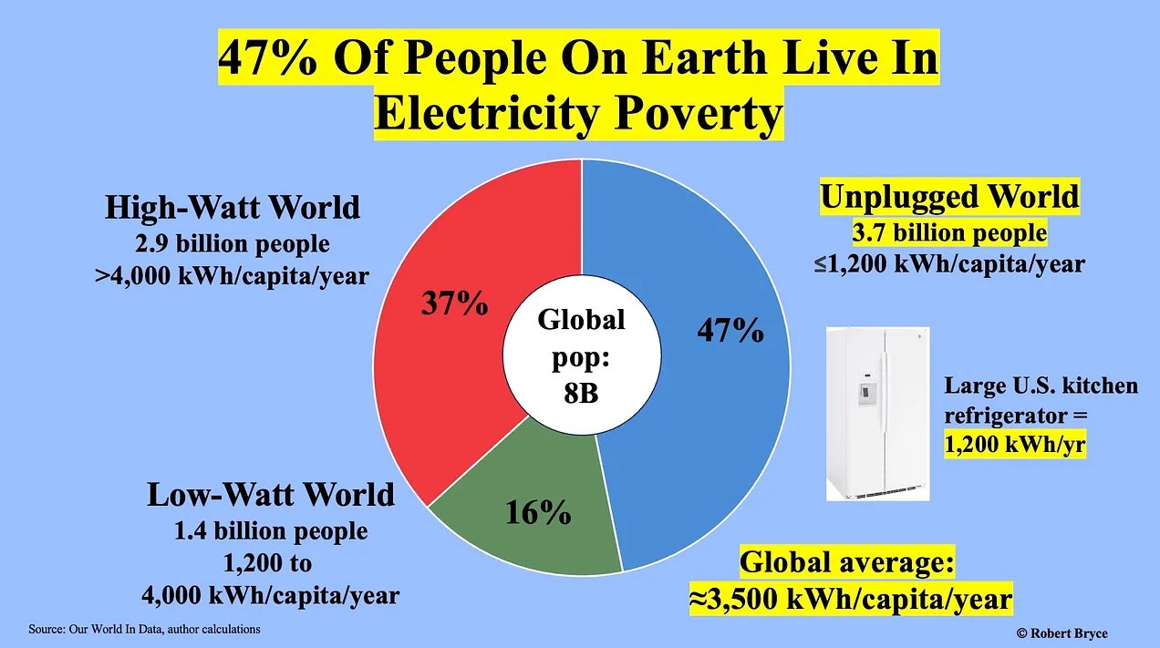 As Robert Bryce explains below a little meaningful power makes a very big meaningful difference of those at the bottom end of the economic spectrum.