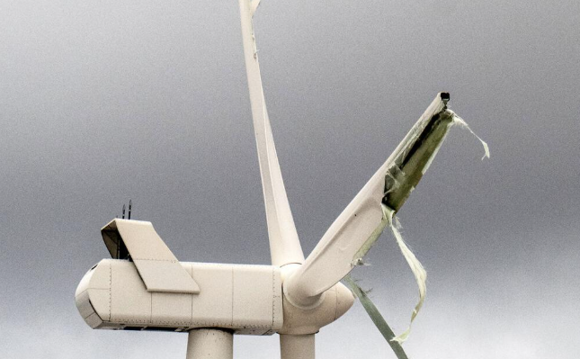 Wind turbine damaged at Lake Winds Energy Park in Riverton Township